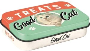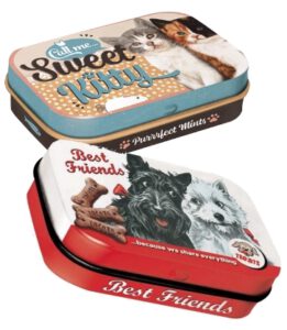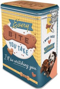 Brokken of snoepjes kunnen hygiënisch en ruimtebesparend worden opgeborgen in deze hoogwaardige blikken voorraadboxen. Door de nostalgische uitstraling is deze voorraadbox een echte blikvanger. Mooi voor thuis en een ideaal cadeau voor alle honden en/of katten -liefhebbers. Voedselveilig met een matte beschermende lak.